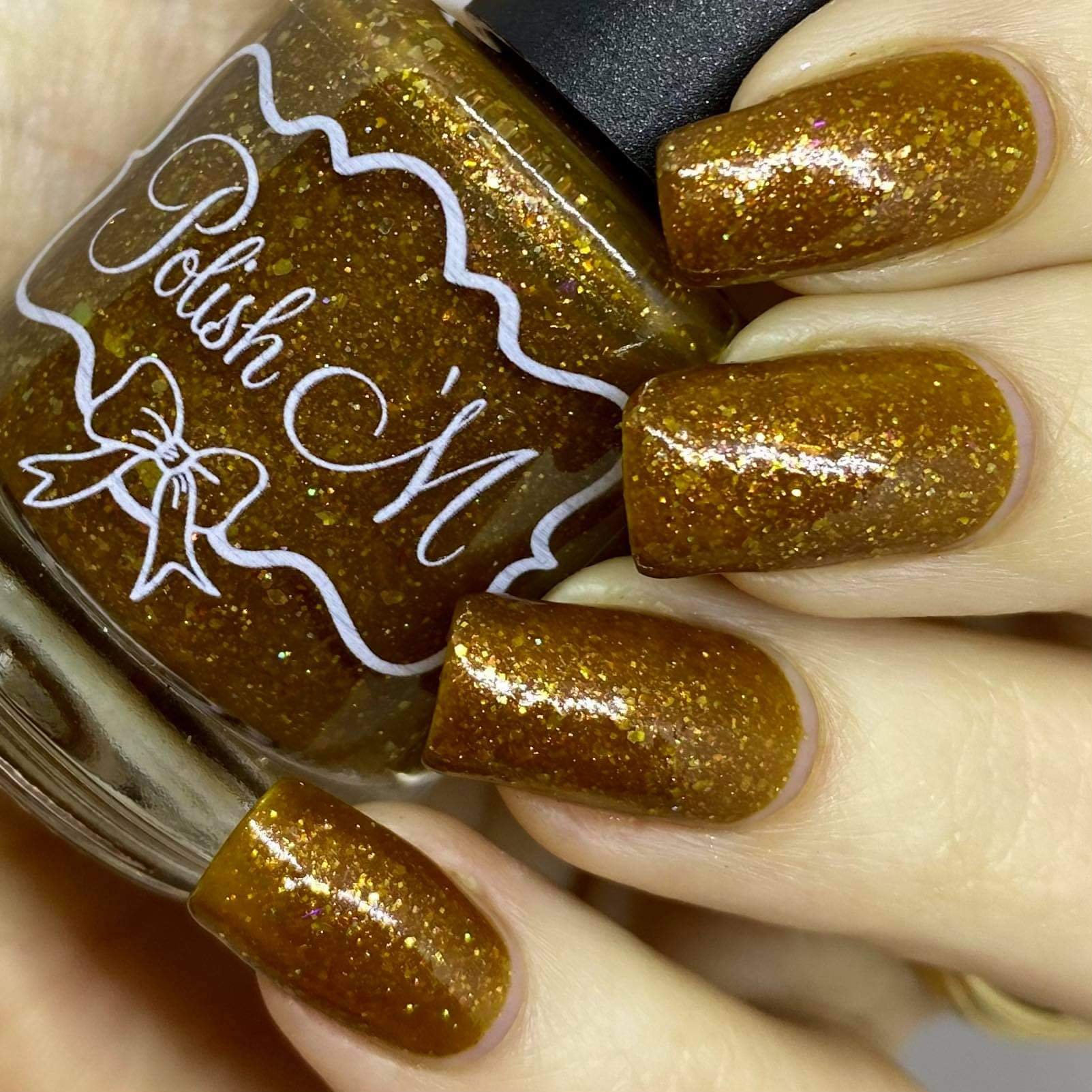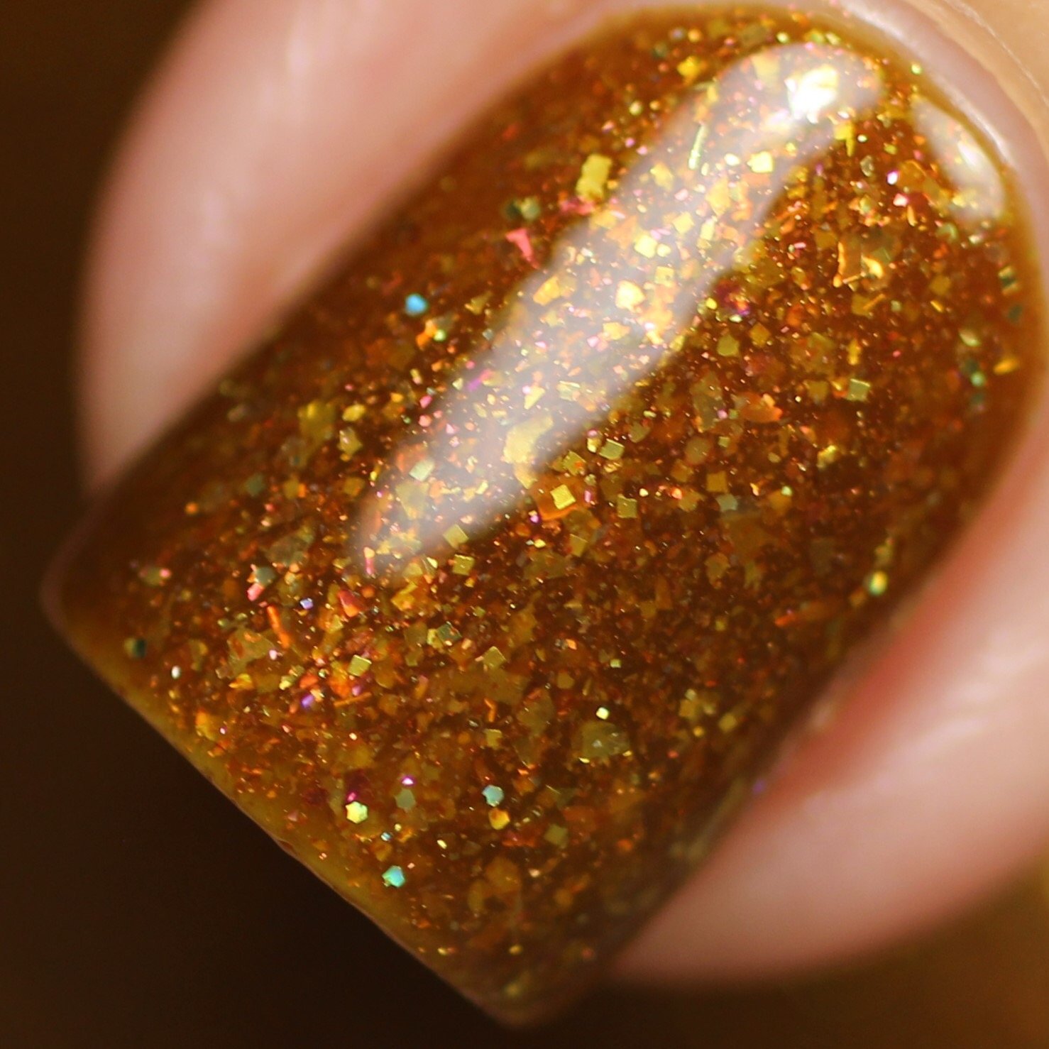 Dear Gourd! - A yellow toned light brown with gold metallic micro glitter, gold shimmer and color shifting iridescent flakes.