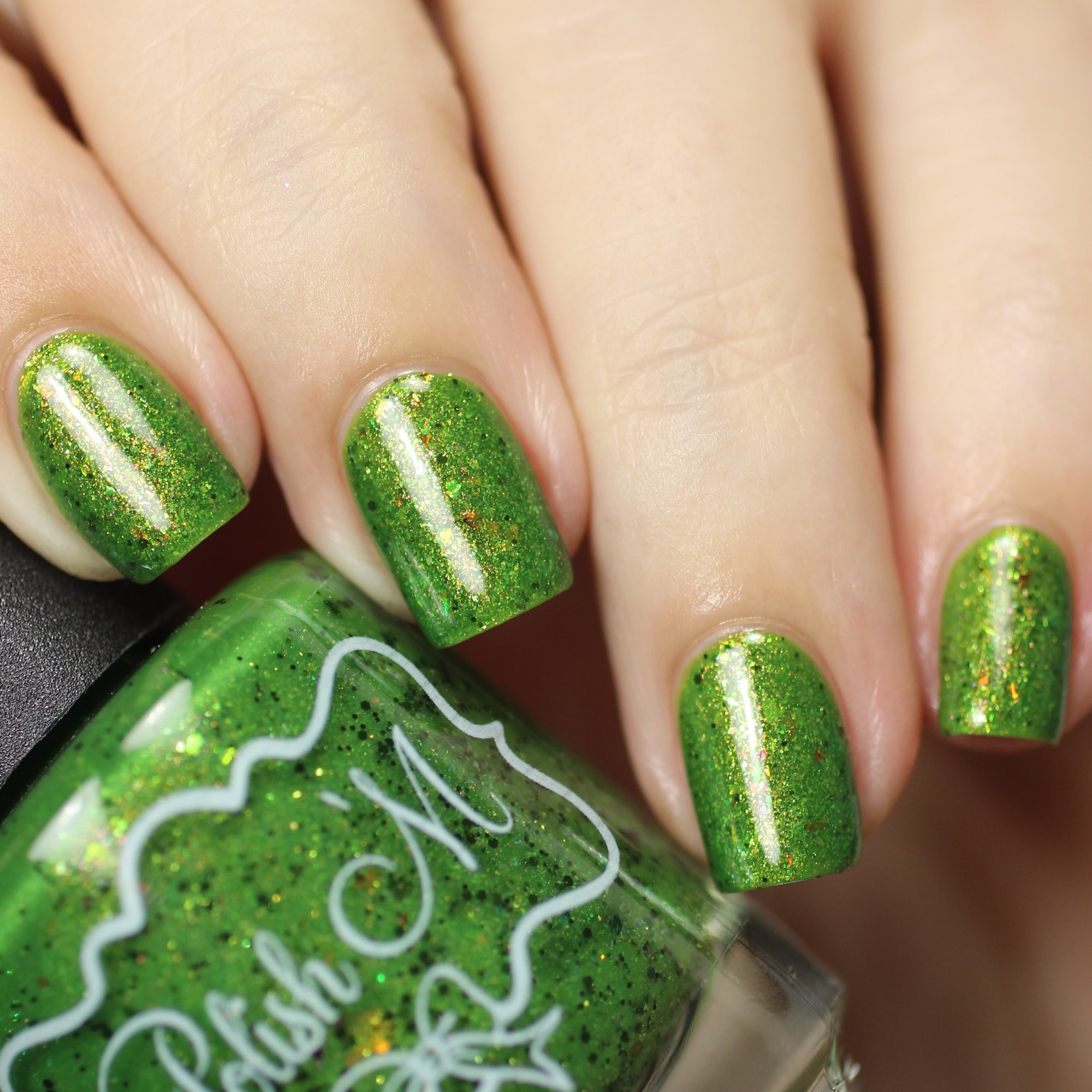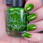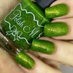 Funny Bones - A bright slime green with a slight green/red shimmer, moss green metallic glitter, chameleon shifting glitter and color shifting iridescent micro flakes.